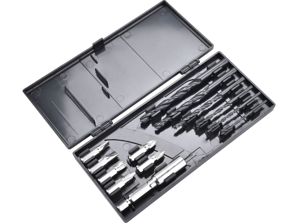 příslušenství: pouzdro s 6vrtáky, 6hroty a držákem na bity